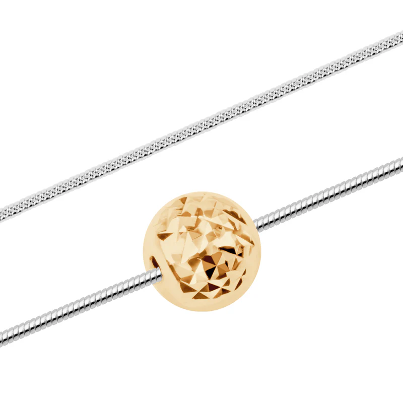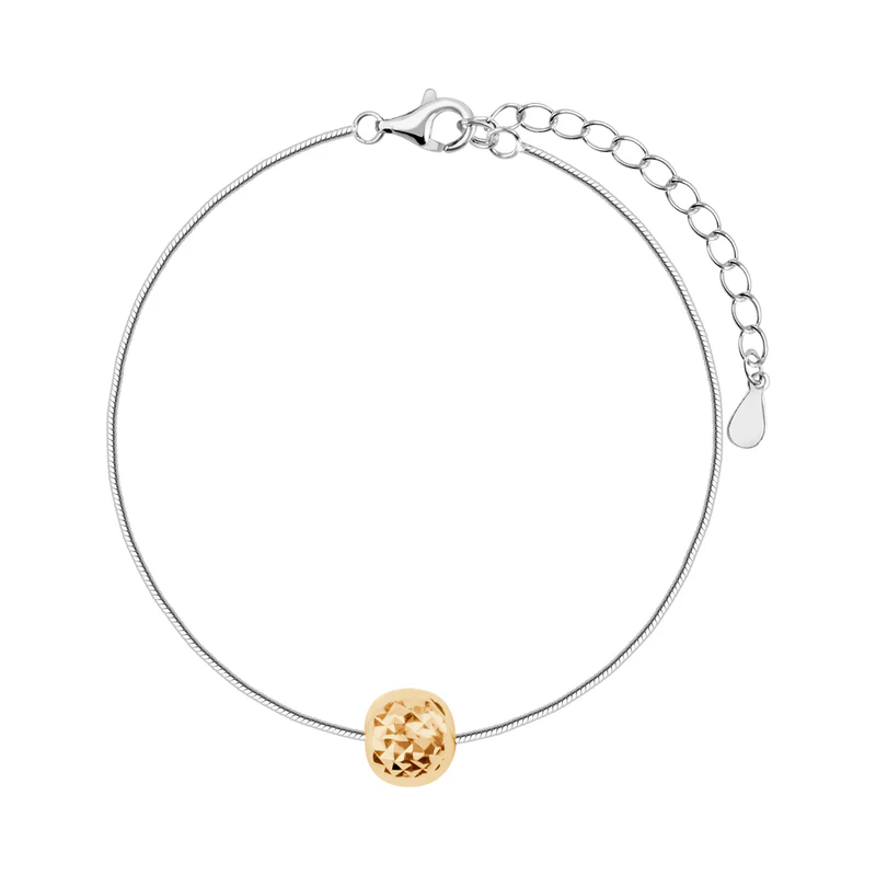 Delikatna bransoletka z pozłacanego srebra próby 925, ozdobiona subtelną kulką o dekoracyjnej fakturze. Minimalistyczny design i regulowana długość sprawiają, że jest idealna na co dzień.