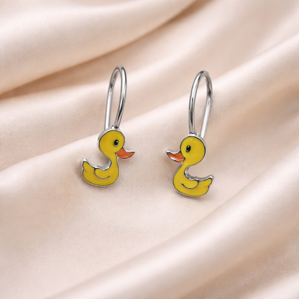 Urocze kolczyki z motywem kaczuszki to lekka, zabawna propozycja, która przyciąga wzrok i dodaje stylizacji charakteru. Żółta emalia w połączeniu z pomarańczowym dziobkiem i subtelnymi detalami tworzy wyrazisty, ale nadal delikatny efekt.
