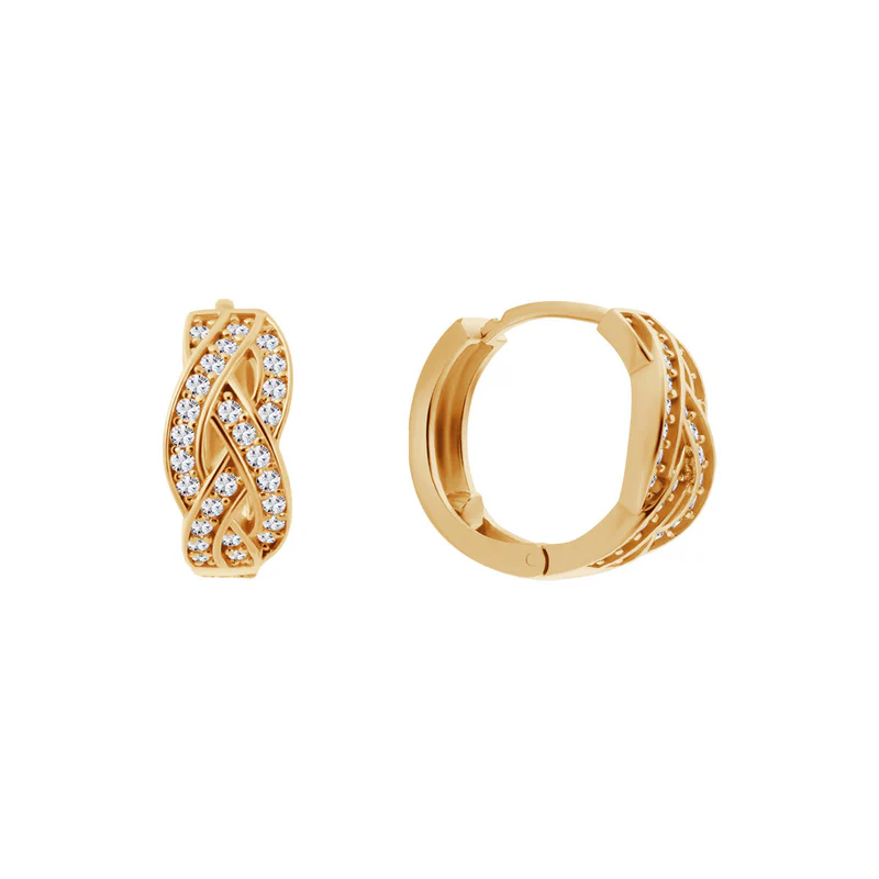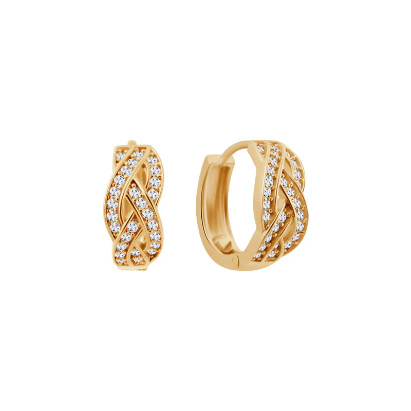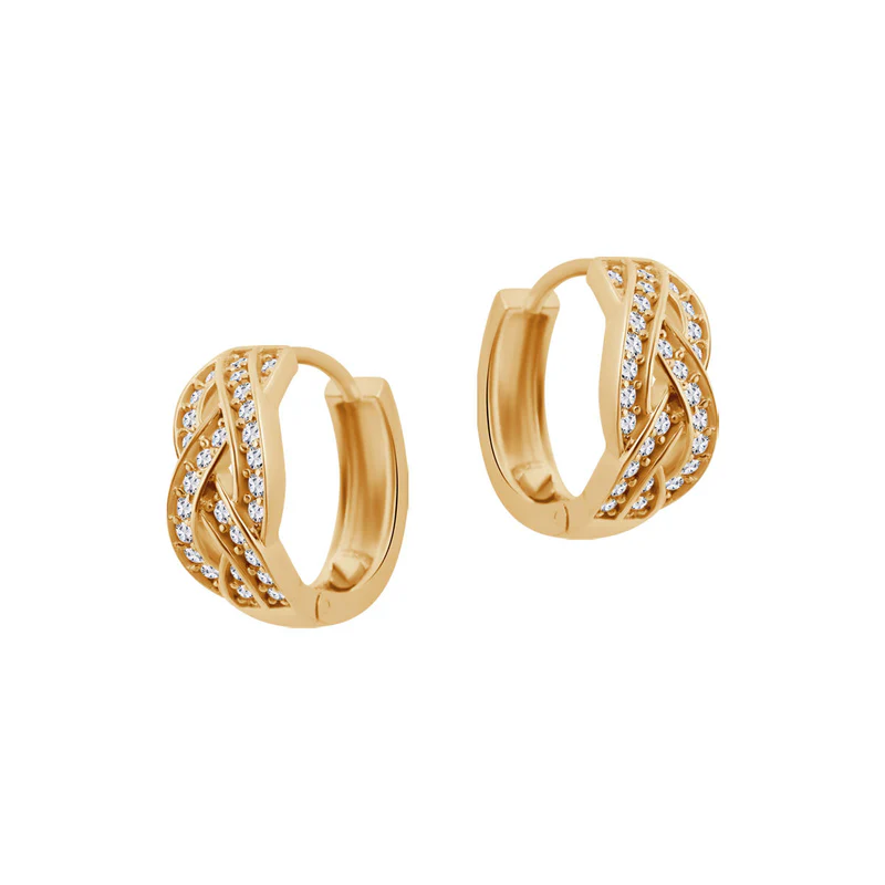 Każdy z kolczyków został ozdobiony na trzech częściach splotu bezbarwnymi cyrkoniami. Skręcony wzór dodaje im wyjątkowego charakteru, a cyrkonie mienią się w świetle, podkreślając Twój styl.