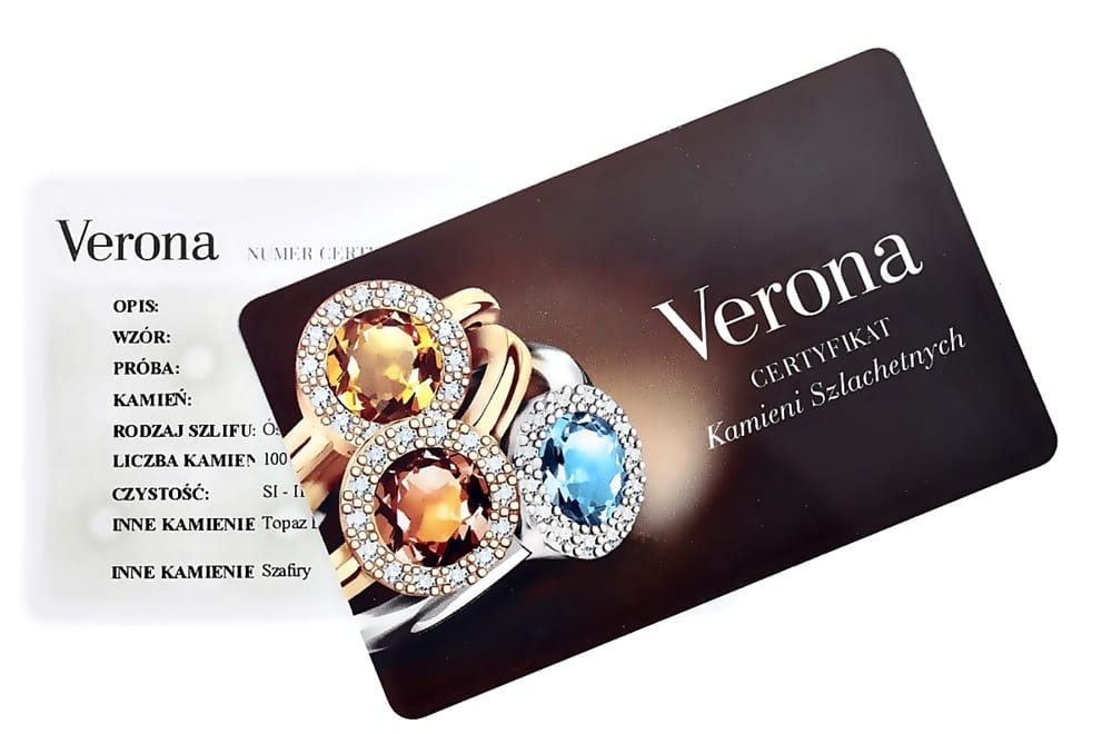 - Autentyczność kamieni szlachetnych potwierdzona Certyfikatem Verona.