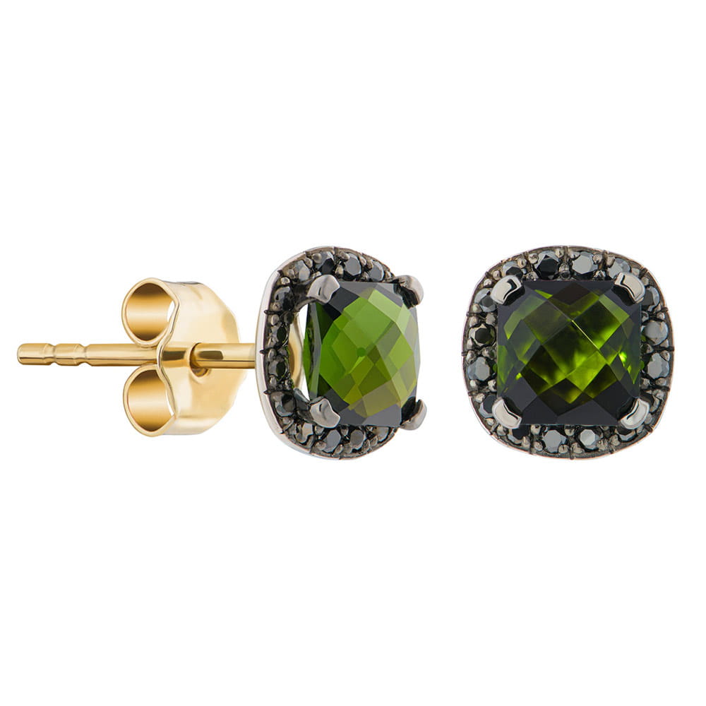 Złote kolczyki z czarnymi diamentami i turmalinem