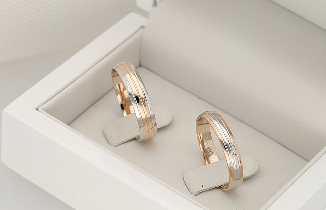 - Rodowanie: to proces pokrywania powierzchni obrączek cienką warstwą rodu. Dzięki temu powierzchnia zyskuje srebrzystego odcienia i większego połysku. Trwałość powłoki jest uzależniona od użytkowania biżuterii.