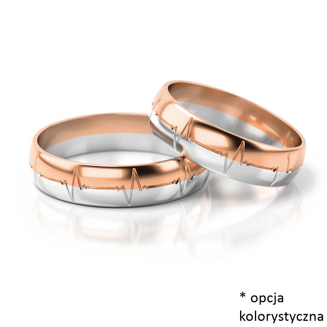 Złote obrączki ślubne 257/ST od 4 do 5 mm próba 585 Rytm serca