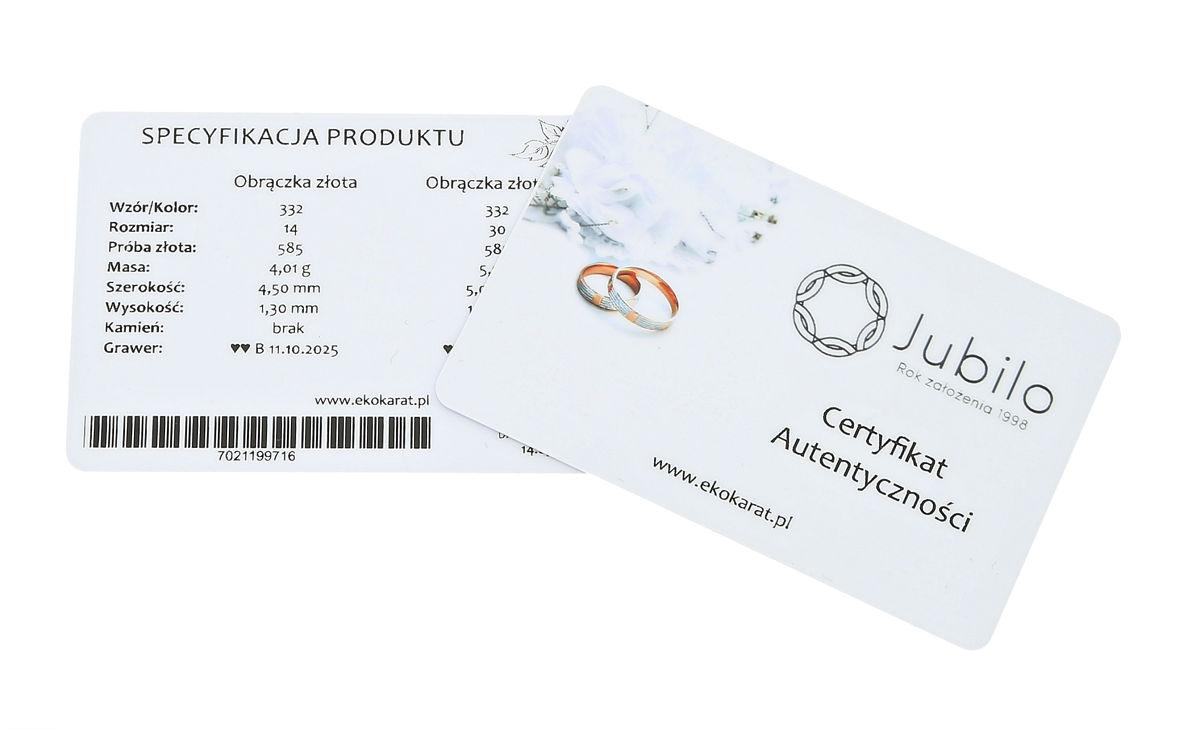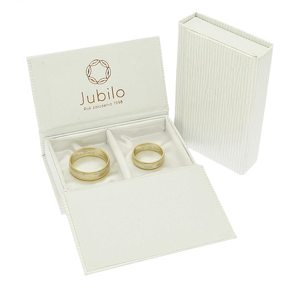 - Obrączki zostaną wysłane w ozdobnym pudełku z zapięciem magnesowym, certyfikatem i ściereczką do pielęgnacji.