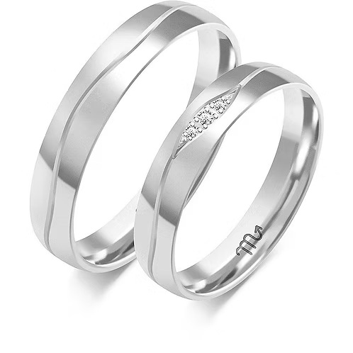 Obrączki w kształcie fali Fala to symbol emocji i siły uczuć po miedzy dwojgiem ludzi. Obrączka damska dodatkowo ozdobiona kamieniami. Każda para obrączek ślubnych marki Złoty Skorpion jest wykonana w technologii bezszwowej, co zapewnia ich wyjątkową trwałość i estetykę.