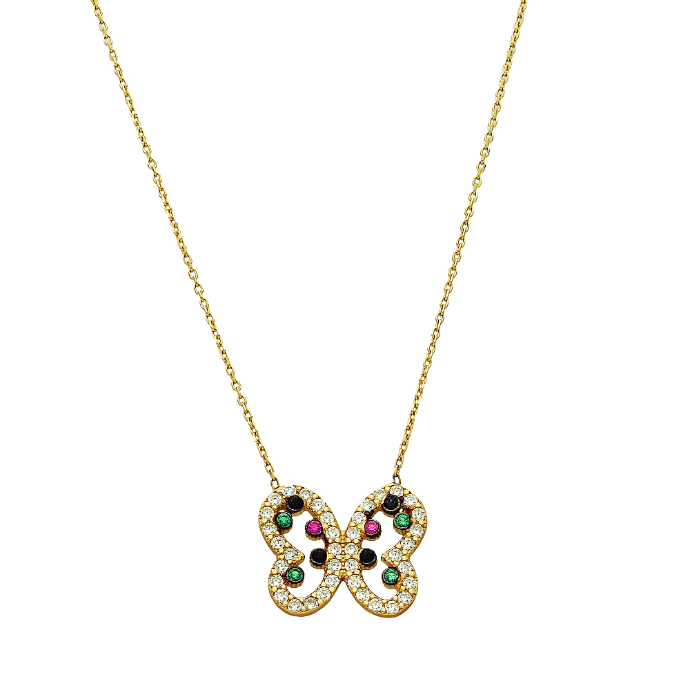 Złoty Naszyjnik Verona CG13447 Motyl z kolorowymi cyrkoniami