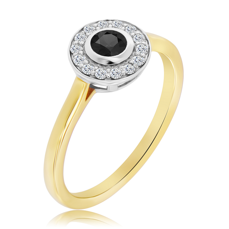 Złoty Pierścionek z czarnym i białymi diamentami 0,50ct