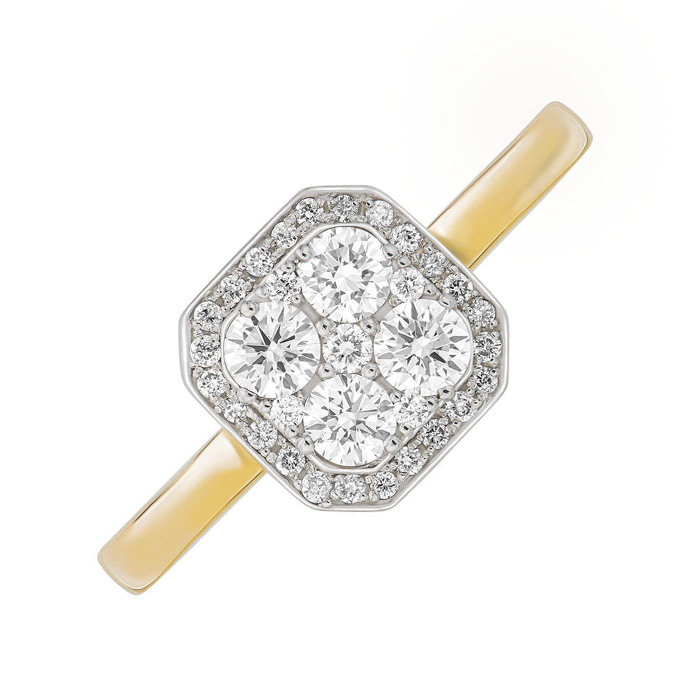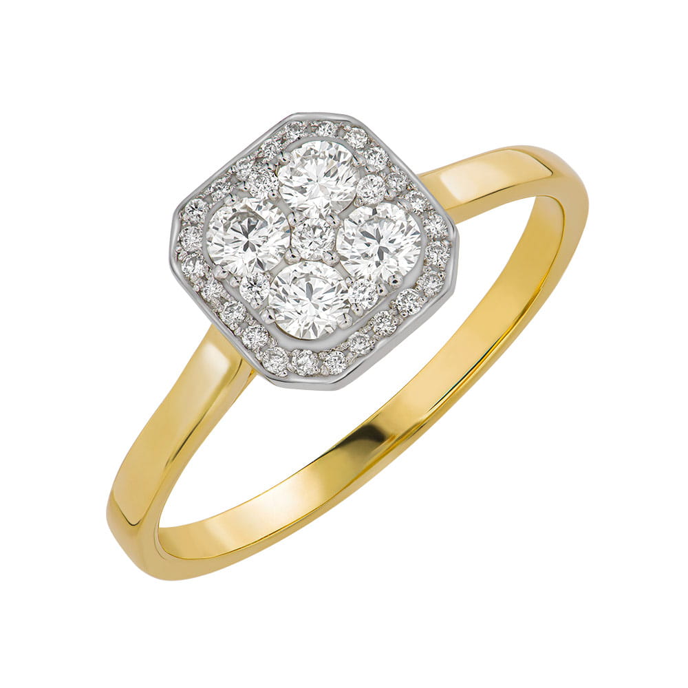 Elegancki, ponadczasowy pierścionek z diamentami o łącznej masie 0,43 ct, oprawiony w żółte złoto próby 585, to propozycja skierowana do osób poszukujących luksusowej biżuterii z klasą. Idealny jako pierścionek zaręczynowy czy prezent rocznicowy.