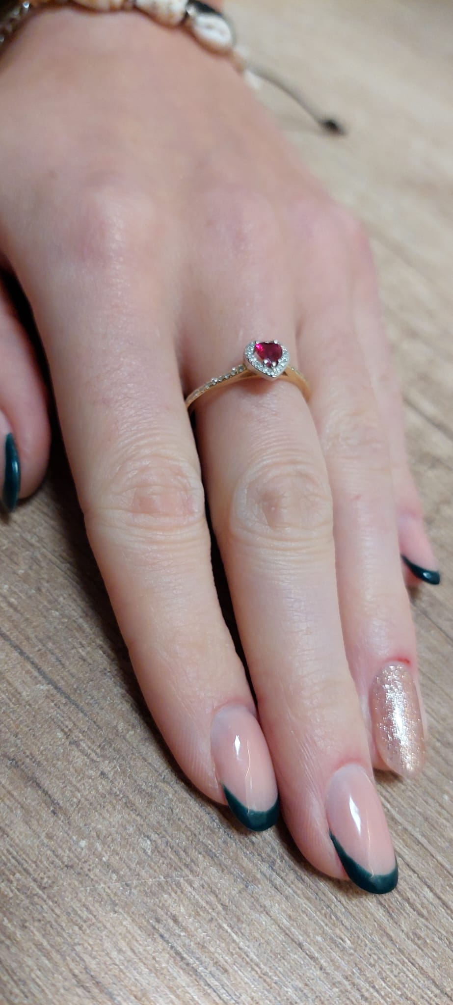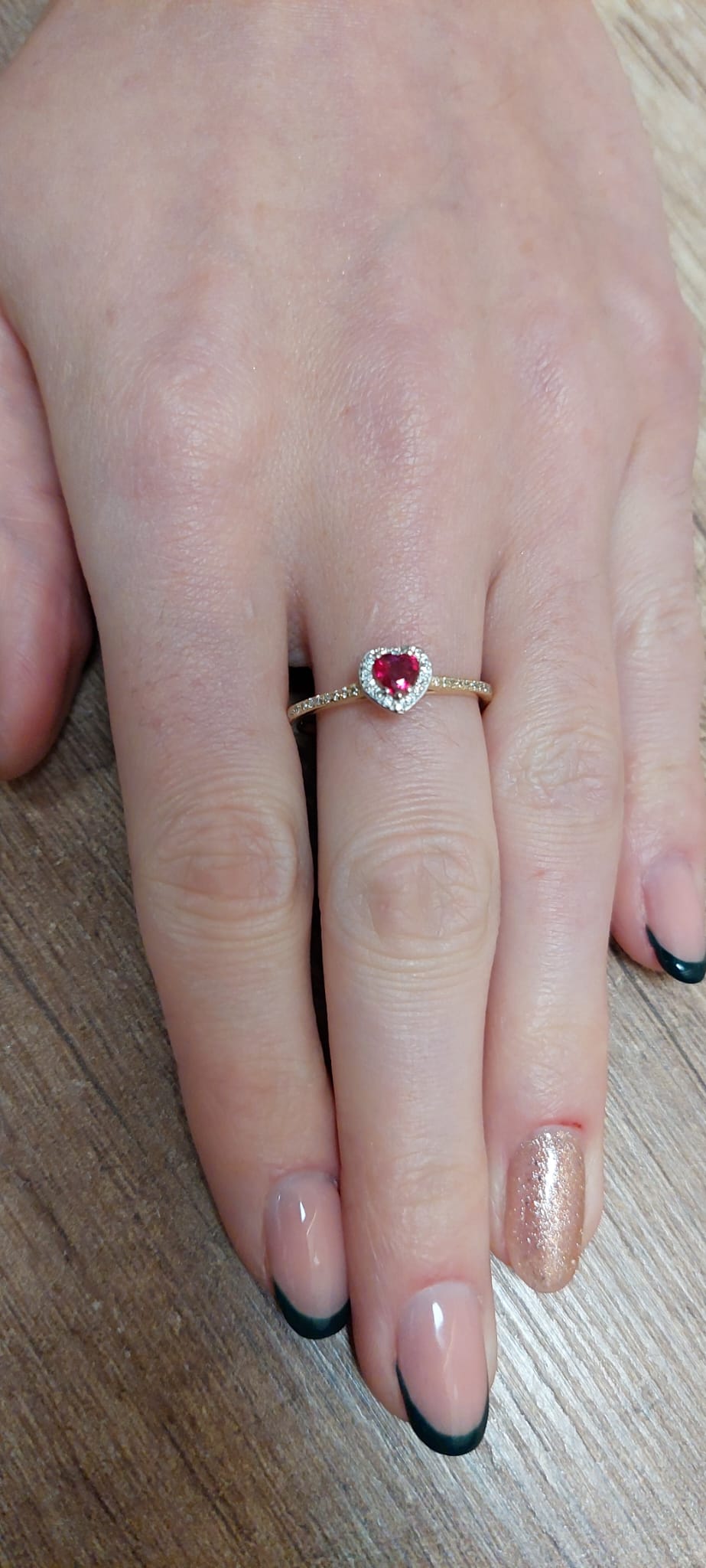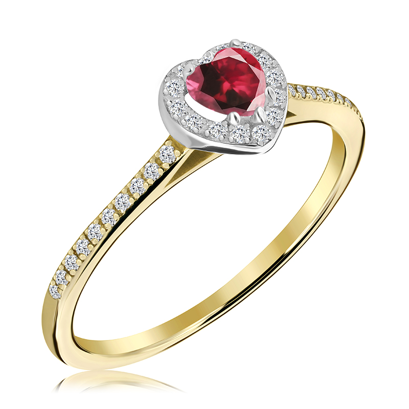 Złoty Pierścionek z rubinem i diamentami 0,34ct. Serce