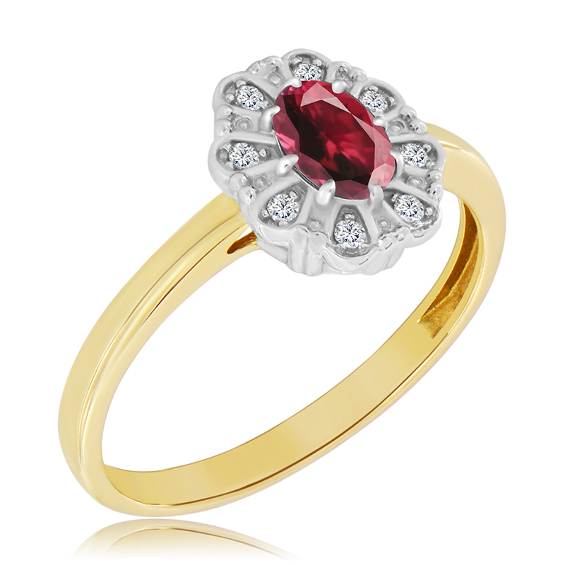 Złoty Pierścionek z rubinem i diamentami 0,58ct