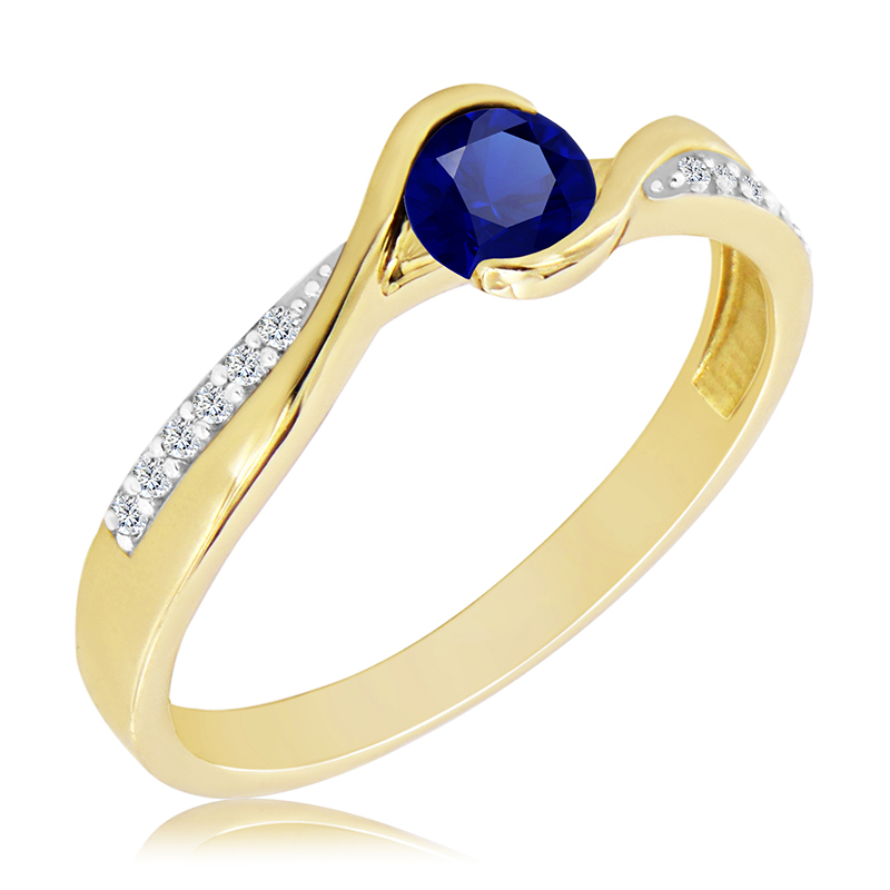 Złoty Pierścionek z szafirem i diamentami 0,37ct