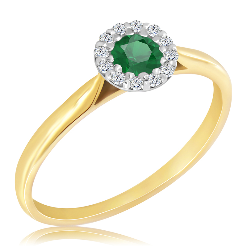 Złoty Pierścionek ze szmaragdem i diamentami 0,29ct