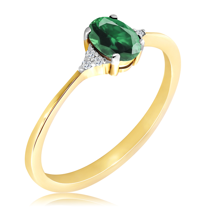 Złoty Pierścionek ze szmaragdem i diamentami 0,42ct