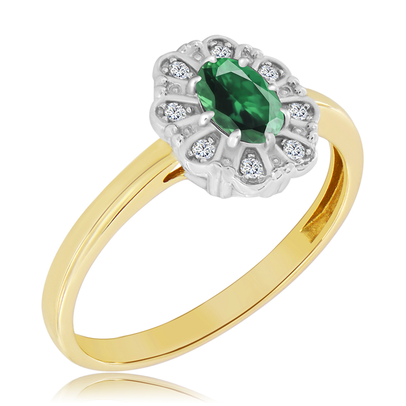 Złoty Pierścionek ze szmaragdem i diamentami 0,47ct