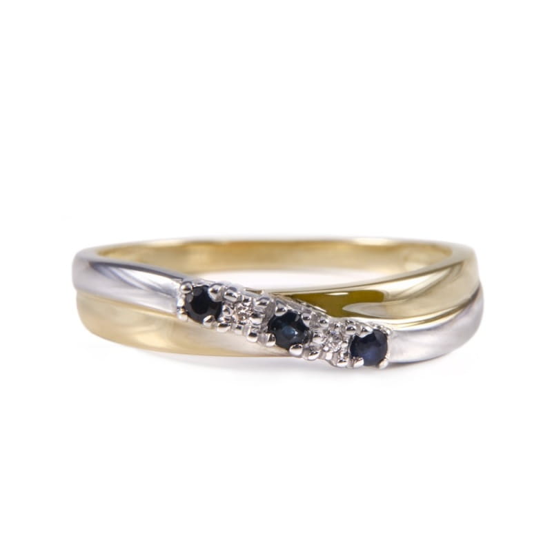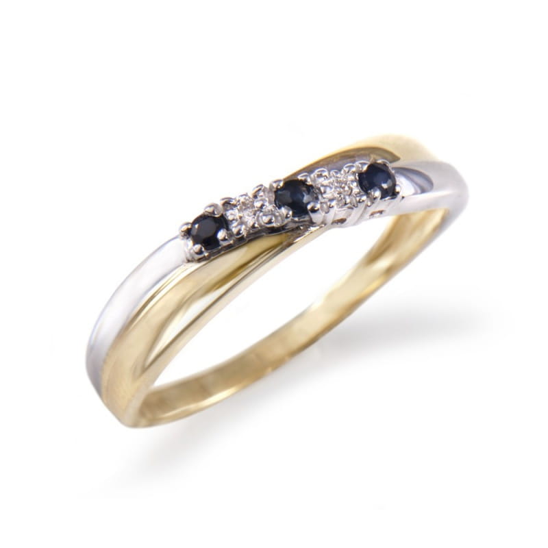 Złoty pierścionek-obrączka z brylantami i szafirami 515