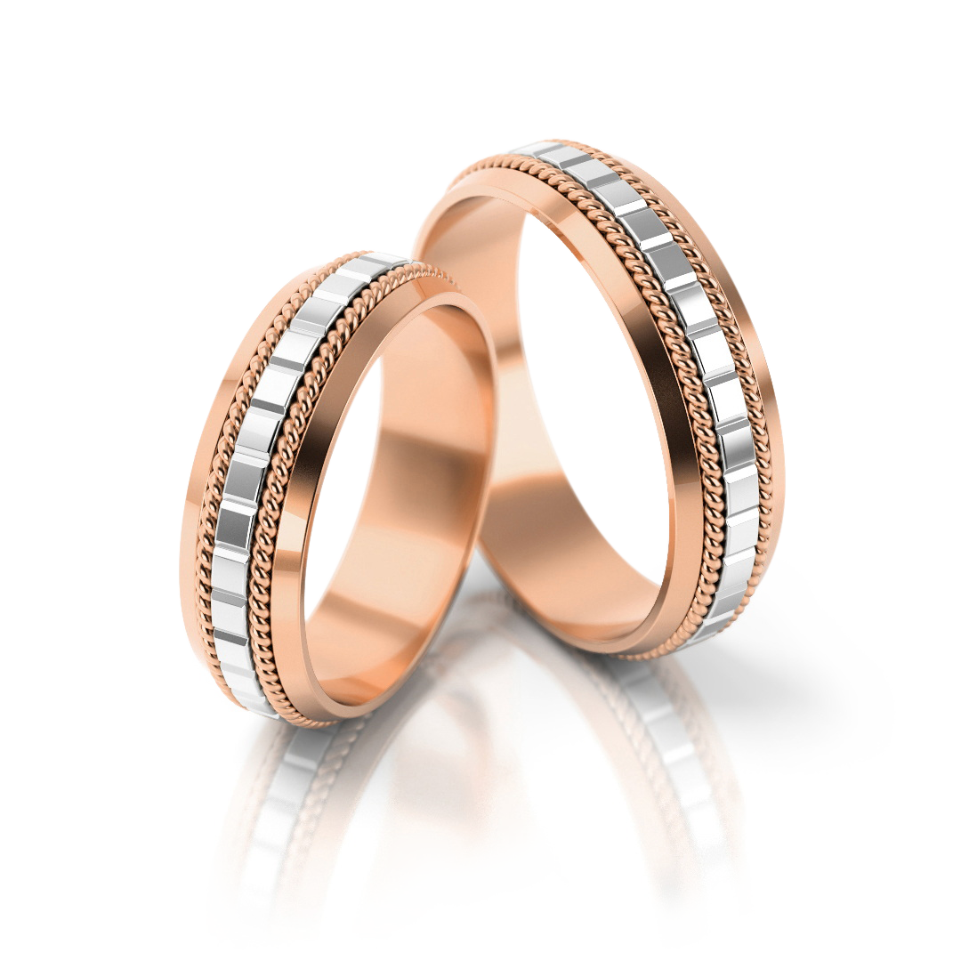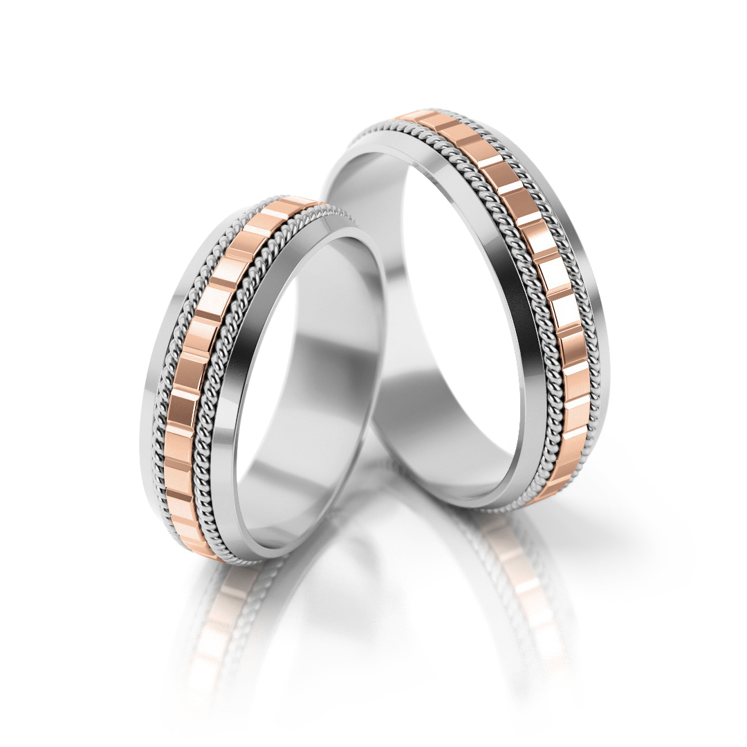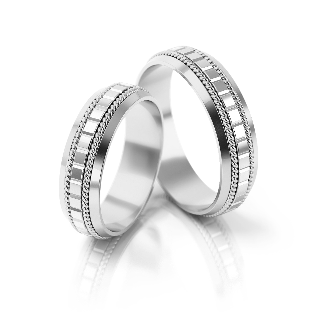 Obrączki z białym złotem są pokrywane rodem. Dla wymagających klientów lub osób z alergią proponujemy białe złoto palladowe w którym zamiast niklu używa się szlachetnego metalu takiego jak pallad.