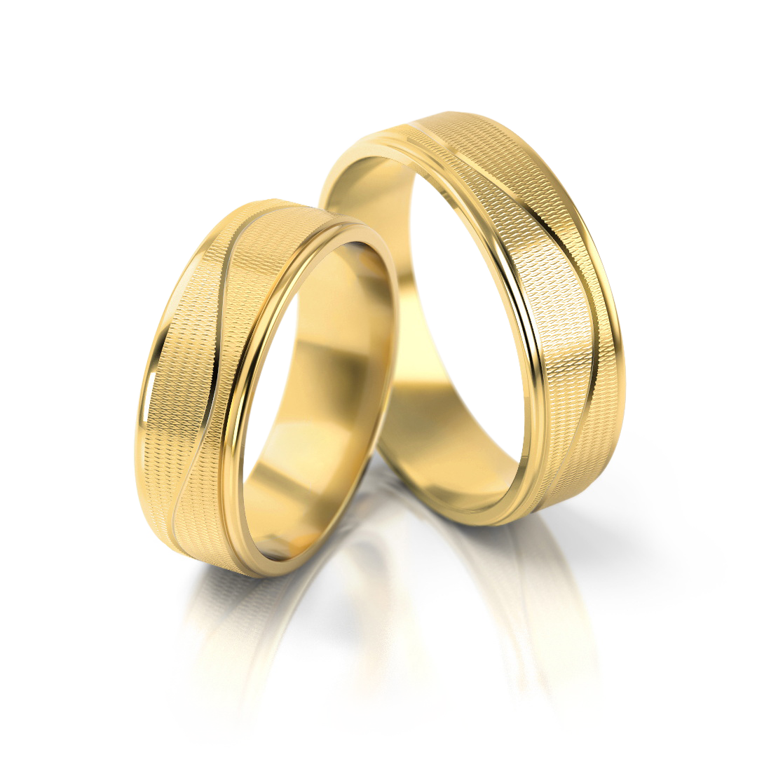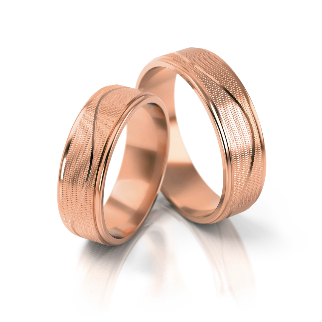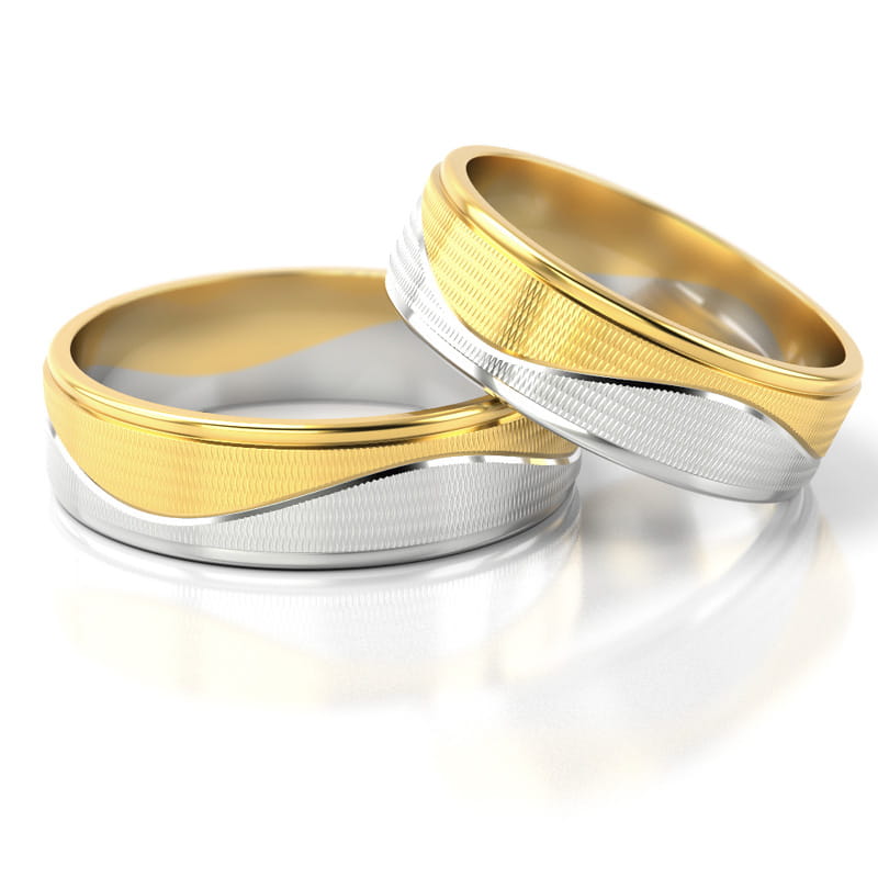 Obrączki o profilu płaskim. Obrączki zostały ozdobione nacięciem w kształcie fali po obwodzie.