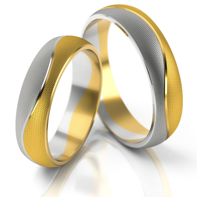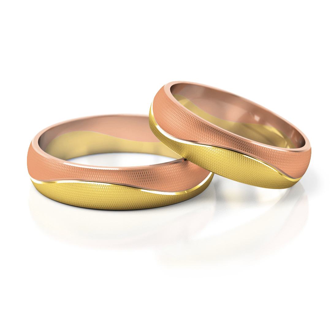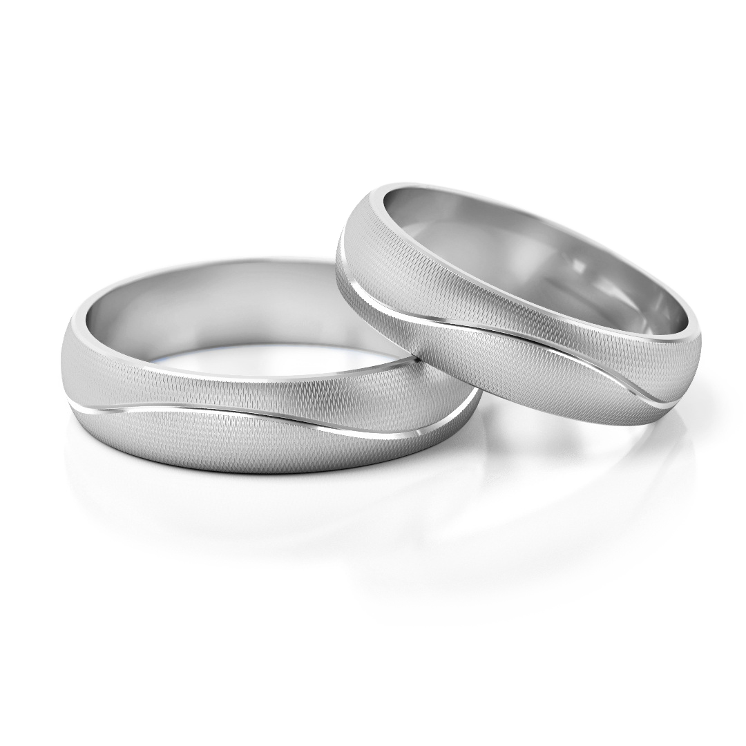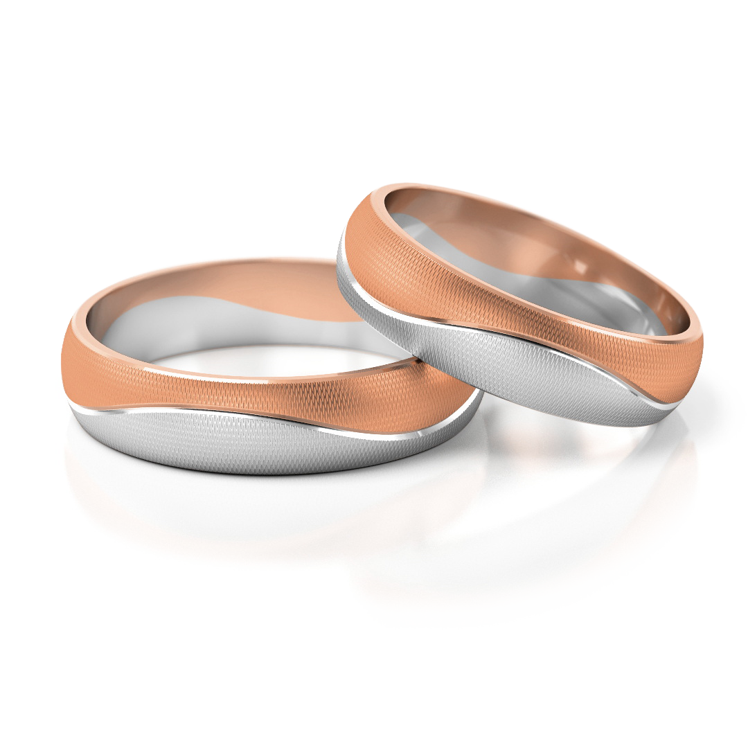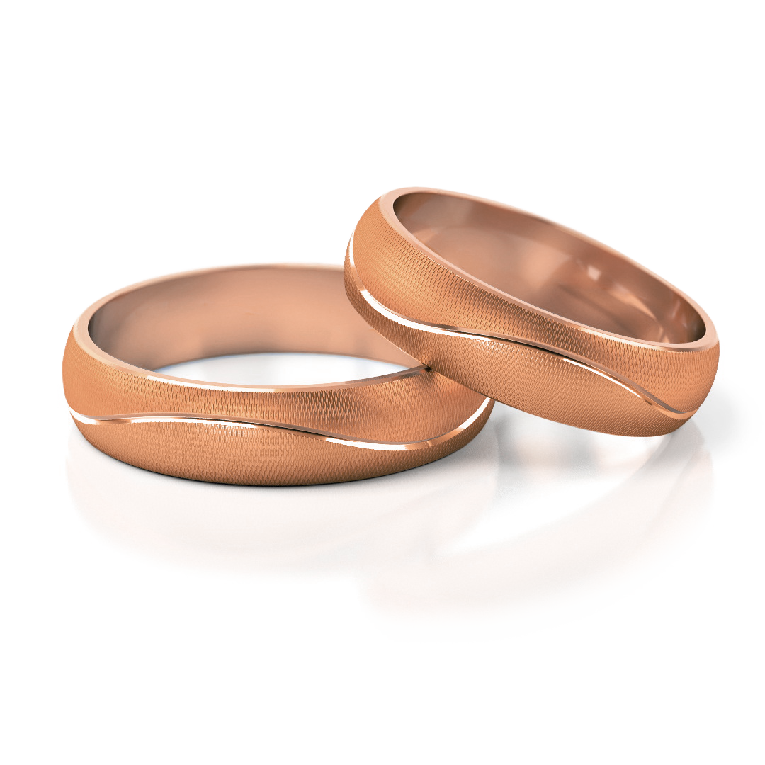 Obrączki o profilu lekko zaokrąglonym. Obie części zostały oddzielone delikatnym rowkiem, użycie matu M6 podkreśla ten efekt.