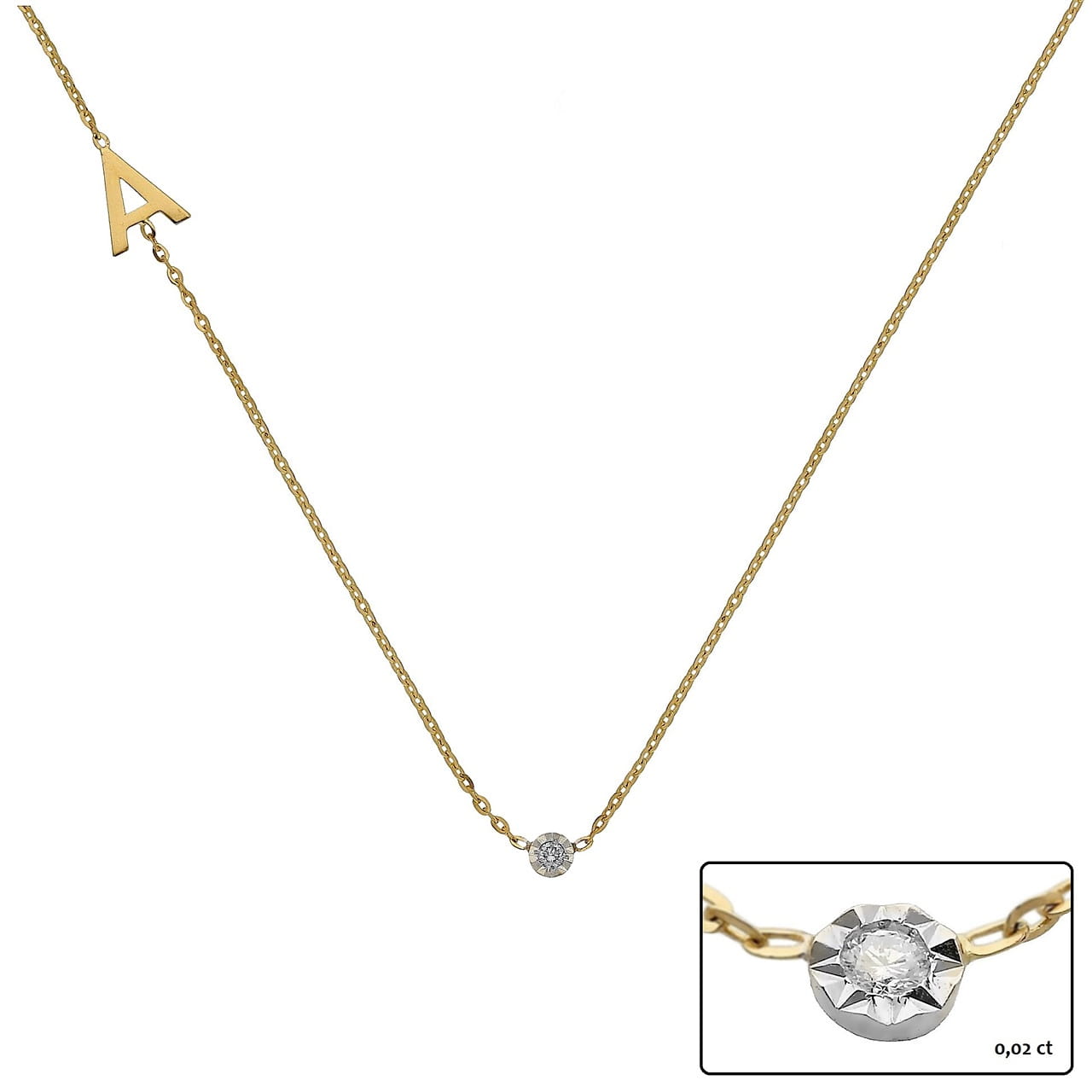 Złoty naszyjnik z literką A i brylantem 0,02ct